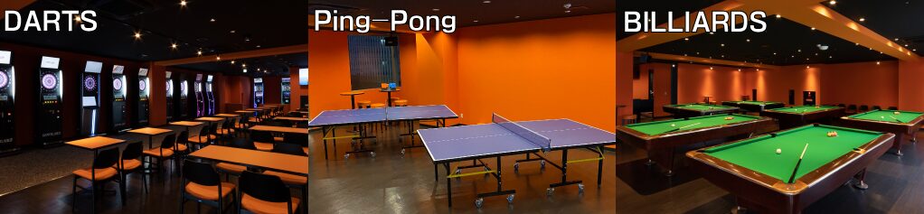 ダーツや卓球、麻雀などもあり、2軒目以降で空気を変えたいときにも使いやすいです。