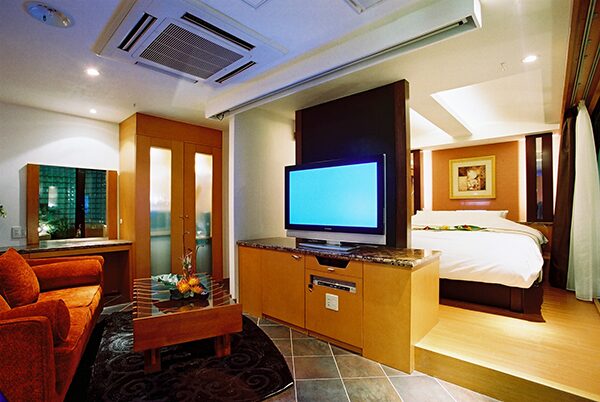 一部の客室では70インチ~37インチまでのTVが用意されていて、15インチ浴室TVが付いている部屋もあります。浴室設備も客室によって異なるので要確認。オーロラバス&ブロアーバスが付いている部屋やReFaファインバブルシャワーがあったり、レインボーバス・ジャグジーバスがある客室もあり幅の広さを感じます。