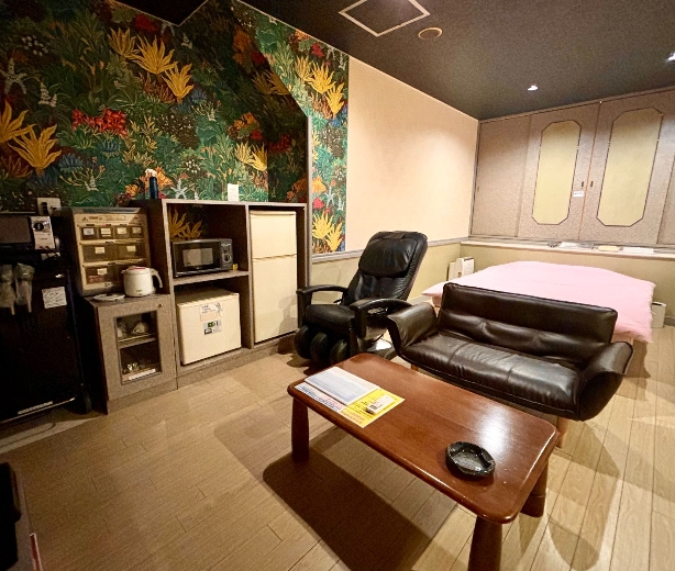 レザーソファーやテーブルも付いているので、ソファーに座りながらテレビを見ることもできます。ナンパした女性との会話の糸口にもなるかもしれませんね。枕元にはコンセントとUSBコネクタが付いているので、スマホを手元に置いておくことができるので安心です。